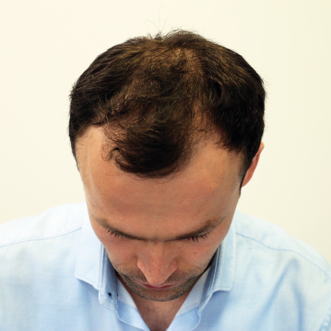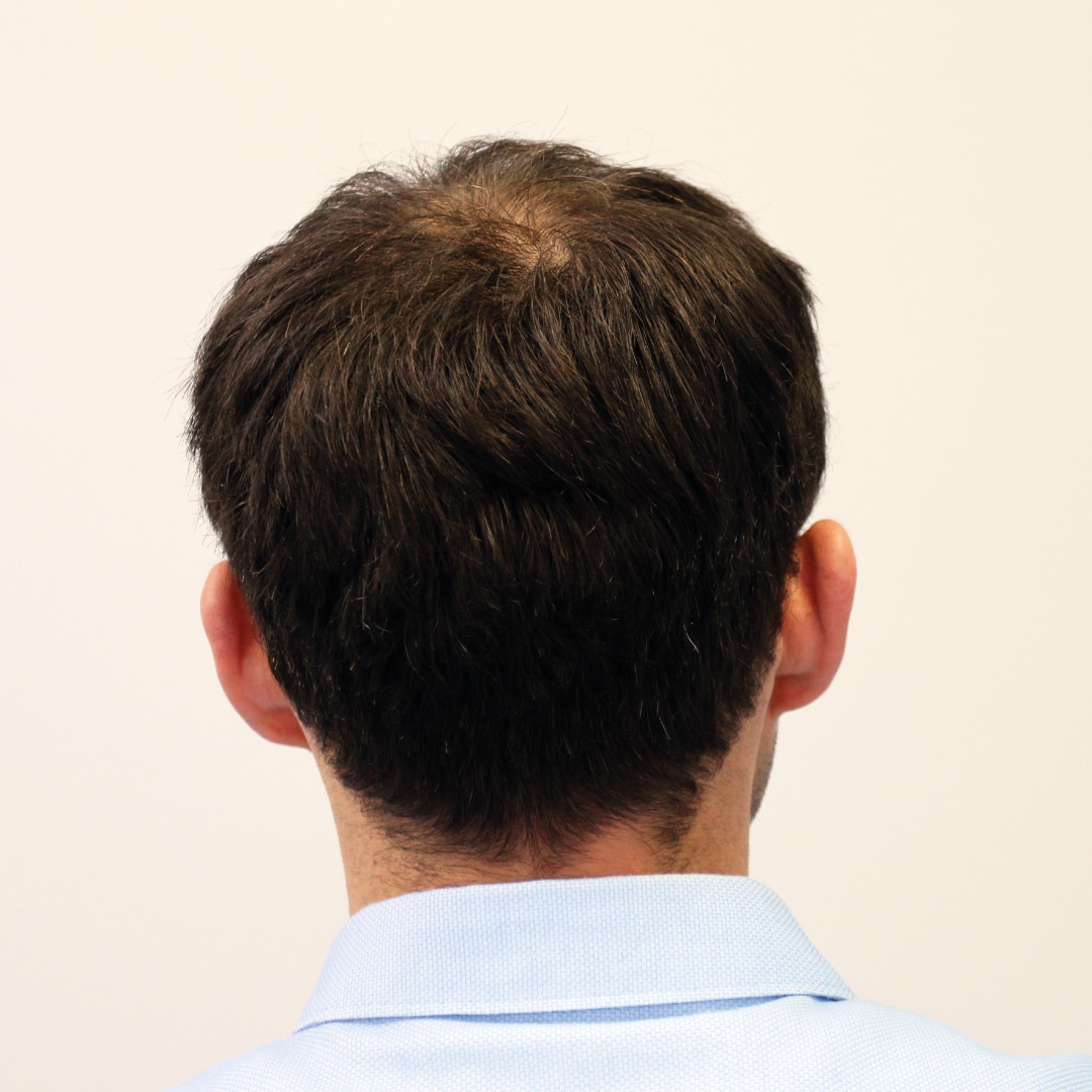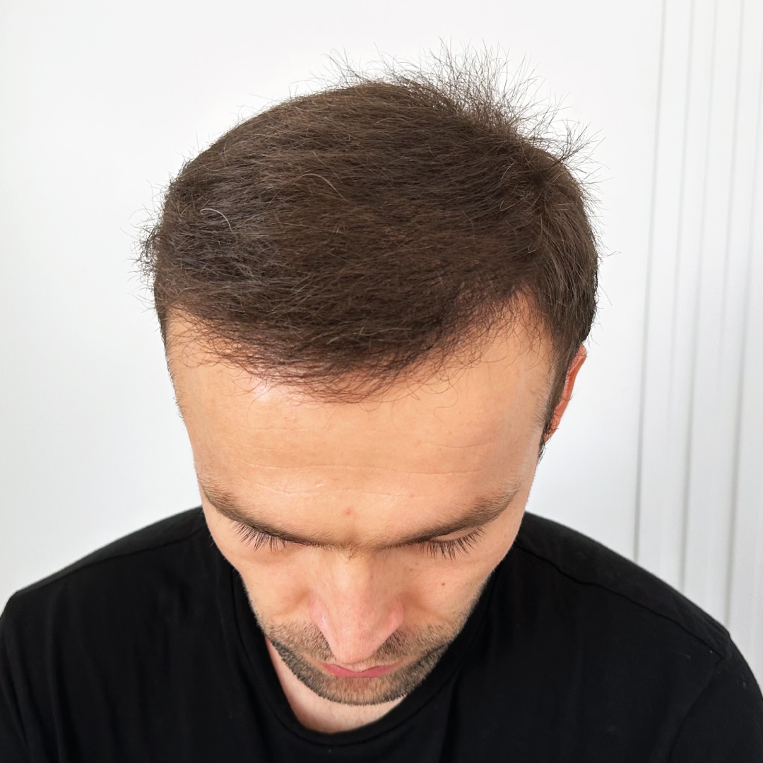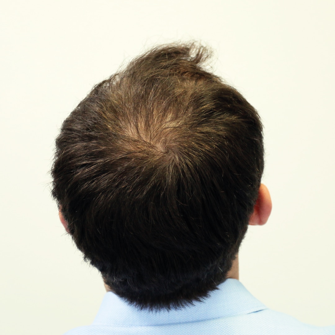- Initially, the patient in the video had thinning hair on the temple and crown areas.