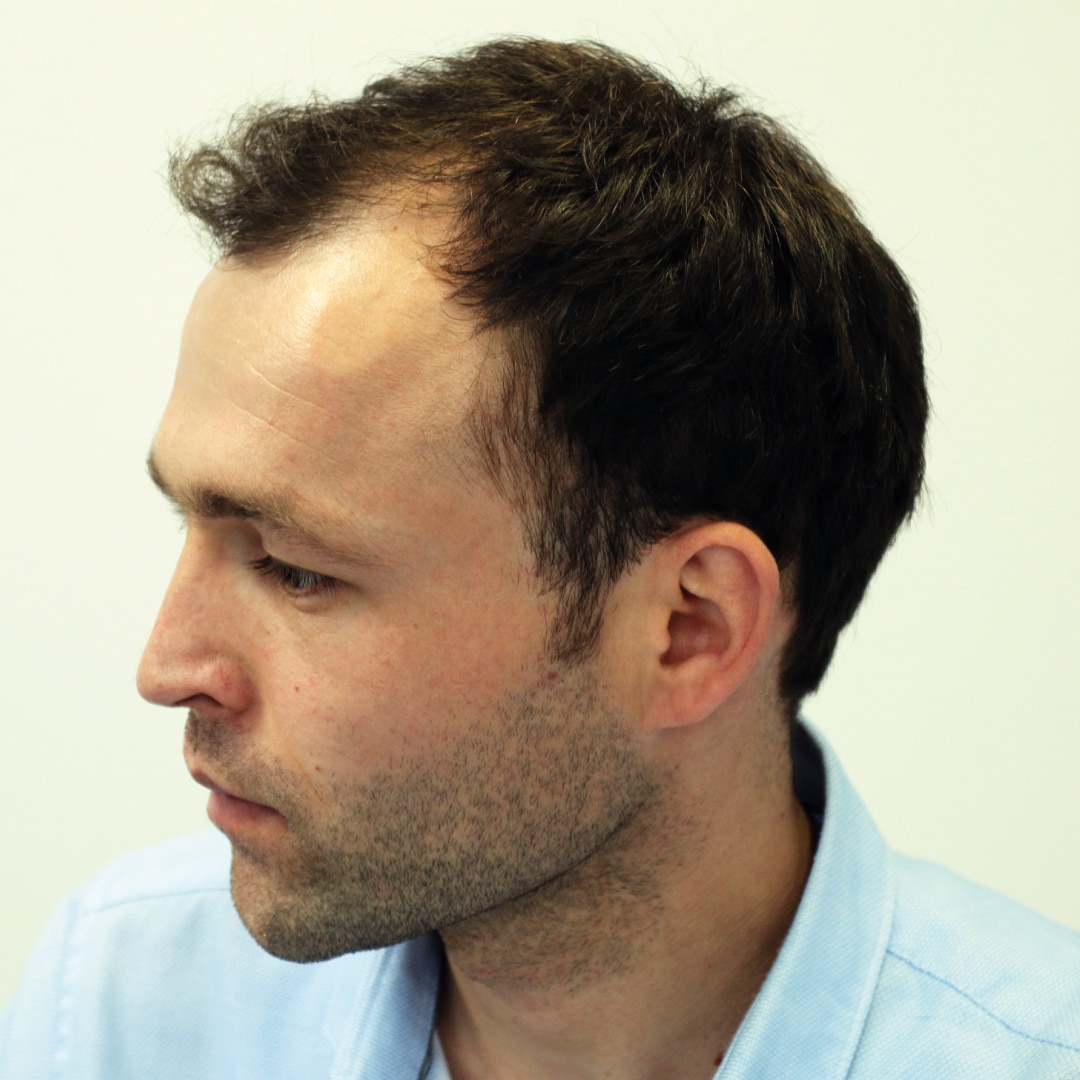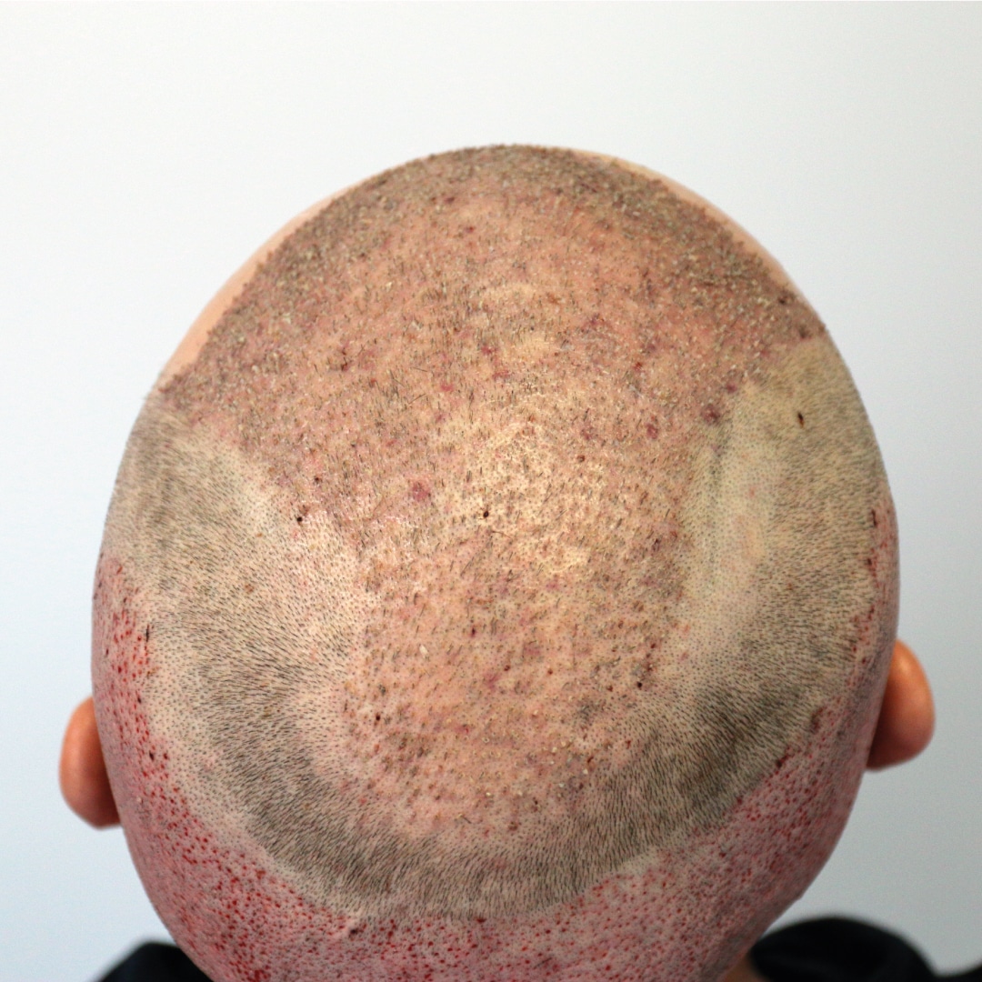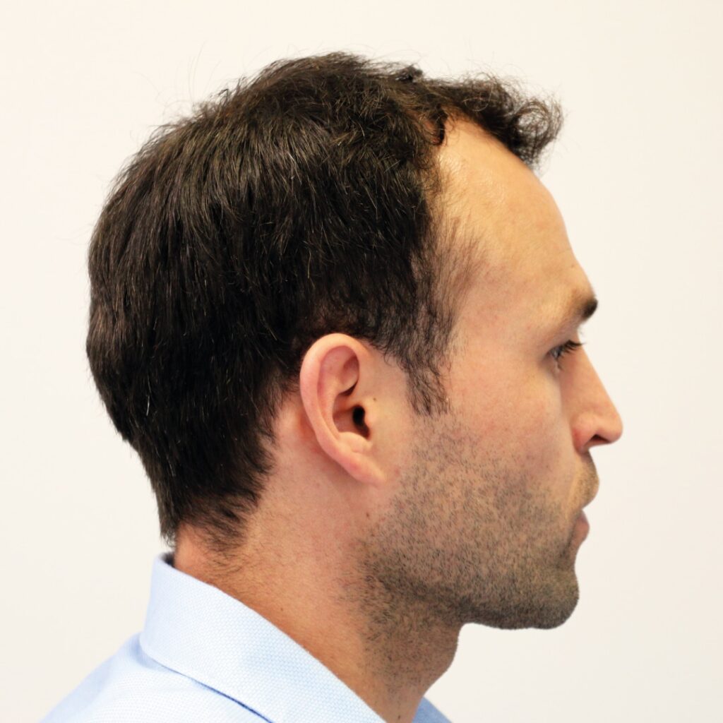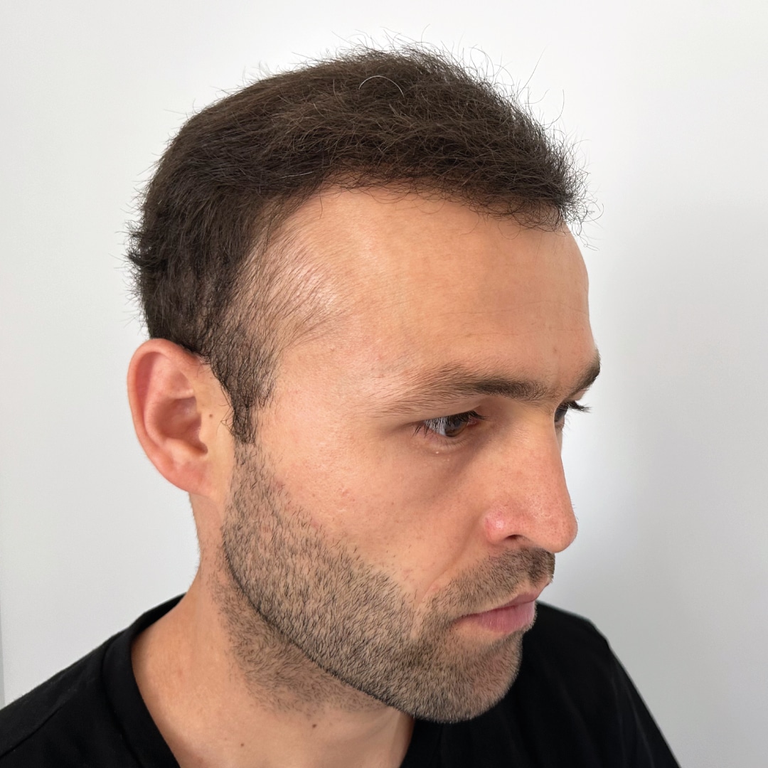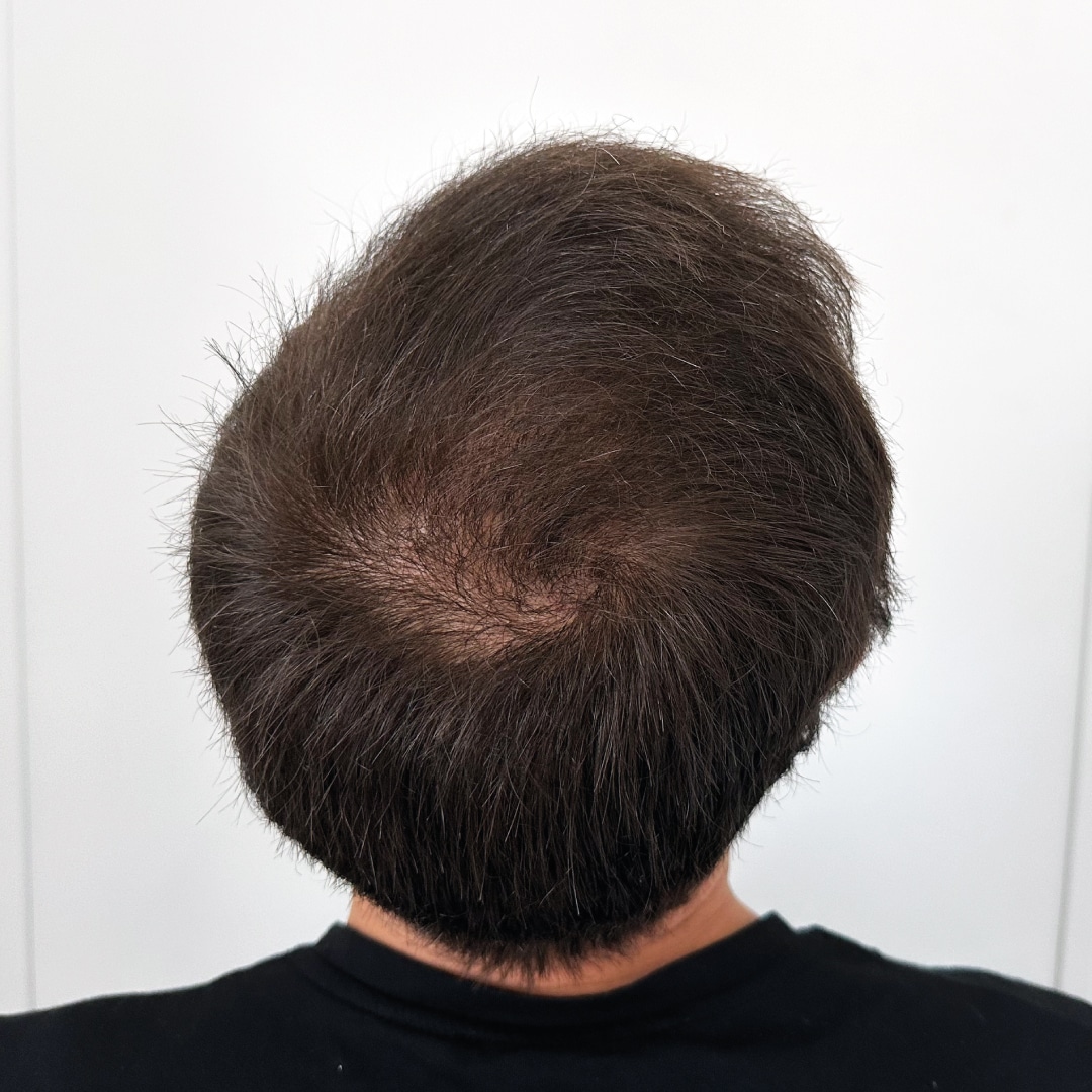 - Initially, the patient in the video had thinning hair on the temple and crown areas.