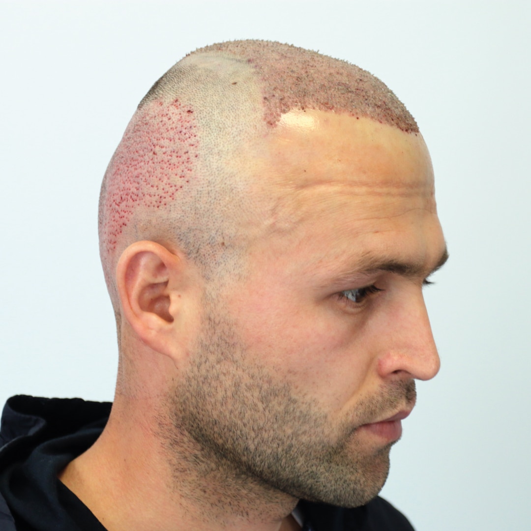 The result of 4000 graft hair transplantation of 4 Norwood patients in their late 20s. Although this patient is in his 20s, the normal hairline of the 30s was applied to the patient. The normal hairline of the 30s will also look natural when the patient reaches the age of 50. Photos of the patient on the first day after the operation were also shared. These redness heal completely in about 10 days. In some cases, redness may last up to 1 month.