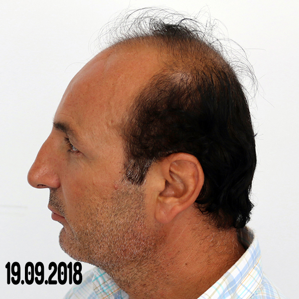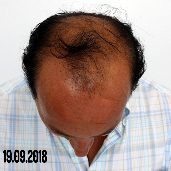 Unmittelbar nach der Haartransplantation erhielt der Patient Sawpolmetto- und Biotin-Unterstützung. Der Patient hat seit vier Jahren keine weitere Behandlung erhalten.