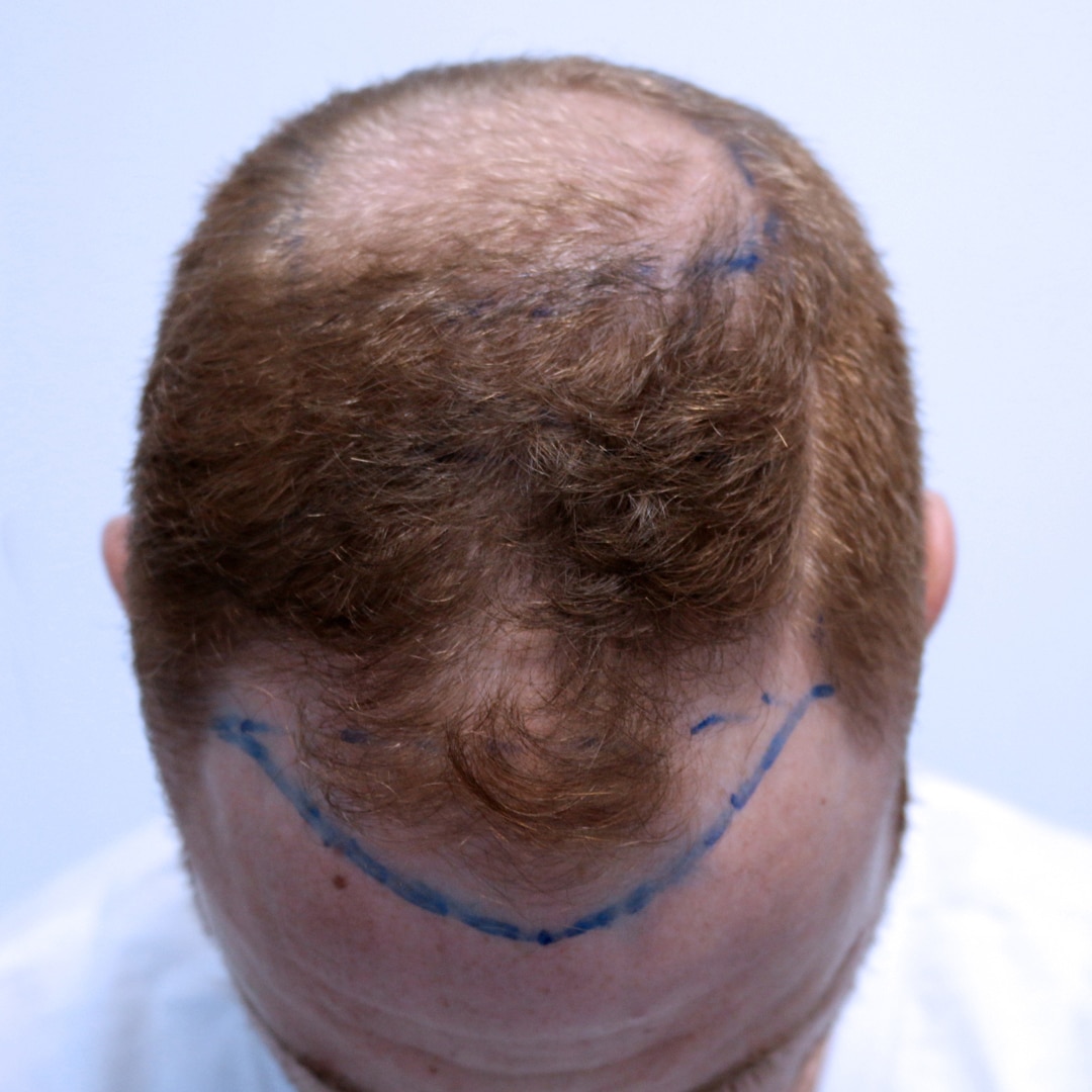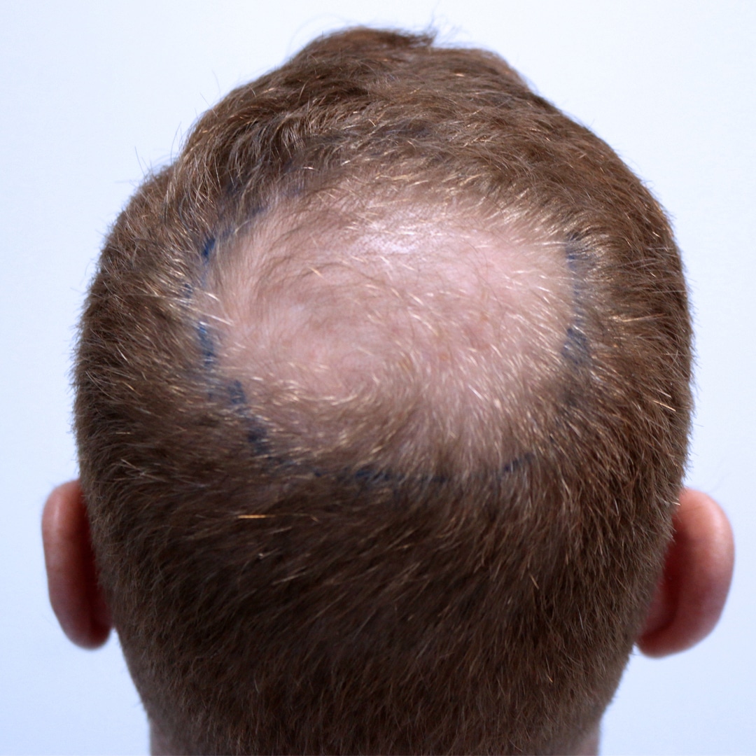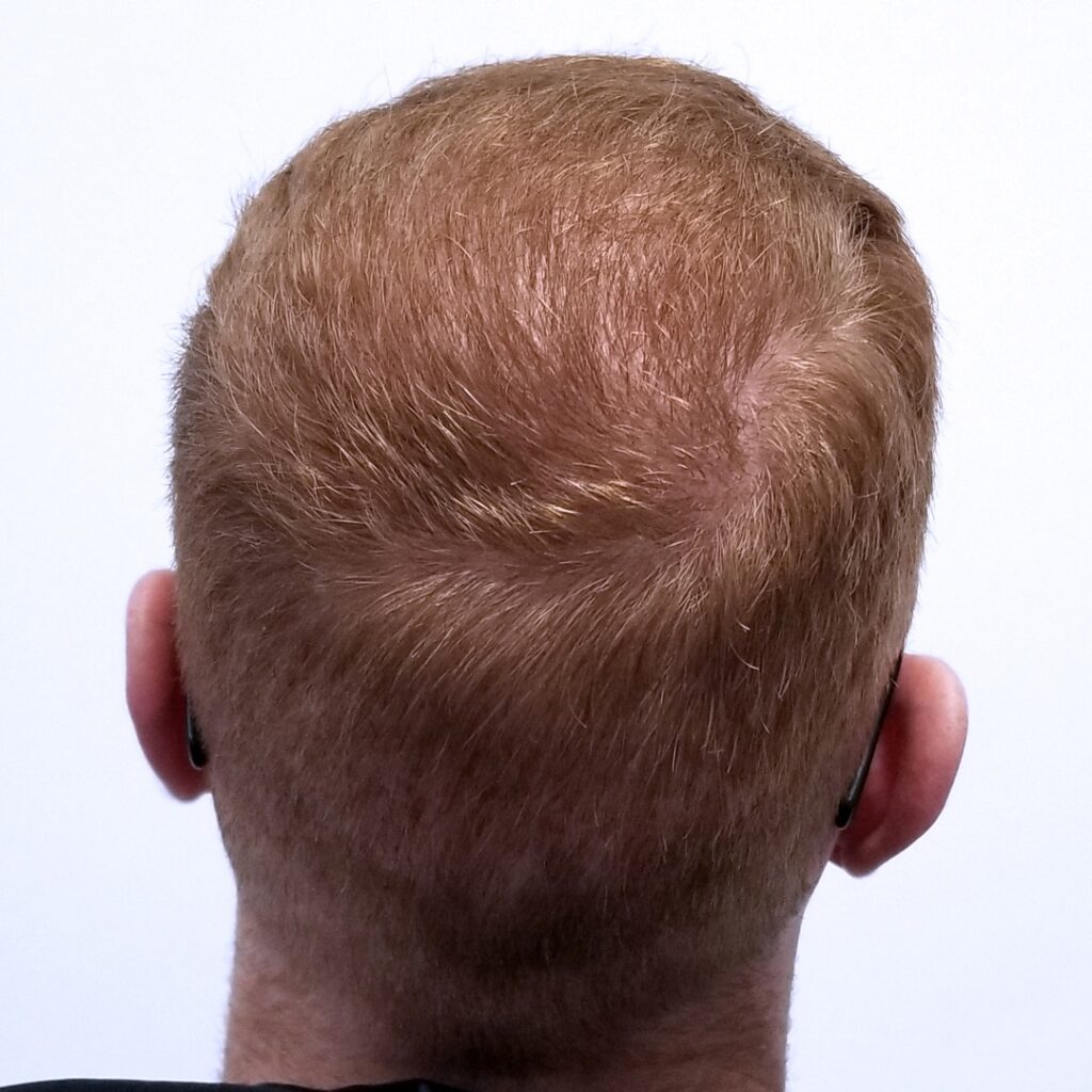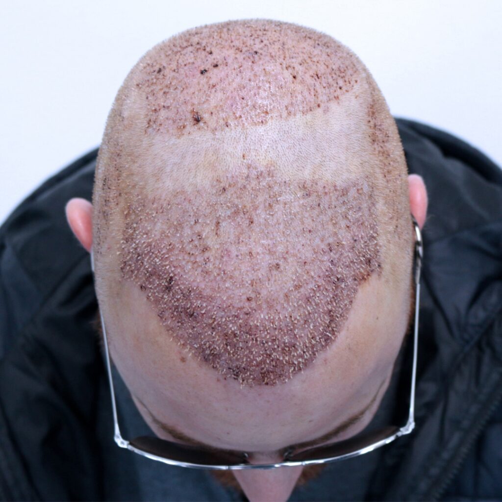 Our patient, who is in his late 30s and has Norwood 4 scale hair loss, is ideal for transplantation results on dark blonde hair. In this case, approximately 2500 hair grafts were transplanted for the frontal region and approximately 1500 grafts for the crown. It has appropriate photos to evaluate the results of crown area hair transplantation with 1500 grafts.