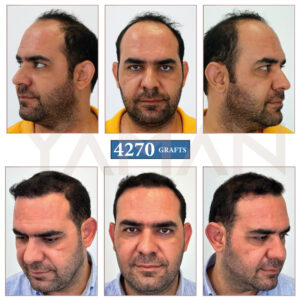 Si examinamos el trasplante de cabello de 4000 injertos antes y después del procedimiento, 4270 injertos fueron suficientes para proporcionar suficiente densidad de cabello en las áreas frontal, media del cuero cabelludo y de la coronilla de la cabeza del paciente.