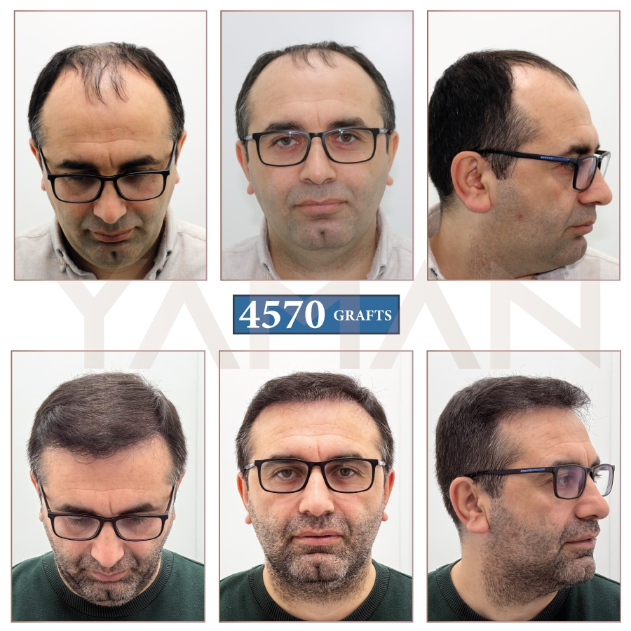 La chevelure est l’un des éléments les plus importants pour l’apparence d’un individu. En comparant les photos avant-après des 4 570 greffons, on constate que notre patient était fatigué et paraissait plus âgé qu’avant l’intervention. Cependant, son visage a retrouvé une apparence plus jeune et plus éclatante après l’intervention.