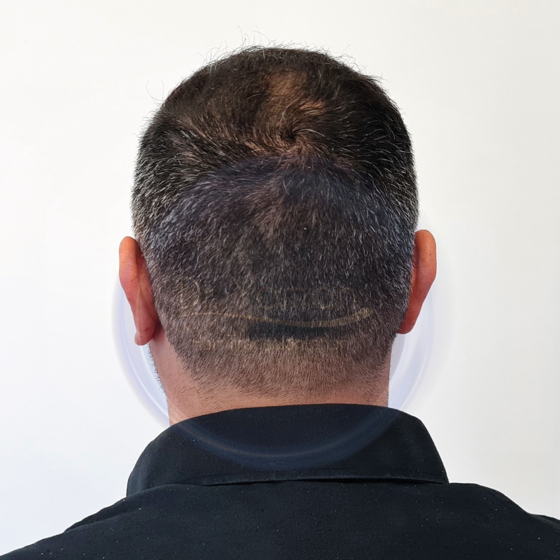 Il nostro paziente, di cui vedi foto e video, è di mezza età. Lo spessore dei capelli del nostro paziente maschio è di 6,3 micron. Innanzitutto, menzioniamo questo nell’ambito del trapianto di capelli folti prima e dopo: il dott. Resul Yaman ha eseguito l’impianto DHI manuale sul nostro paziente con problemi di perdita di capelli a tre vertici Norwood.
