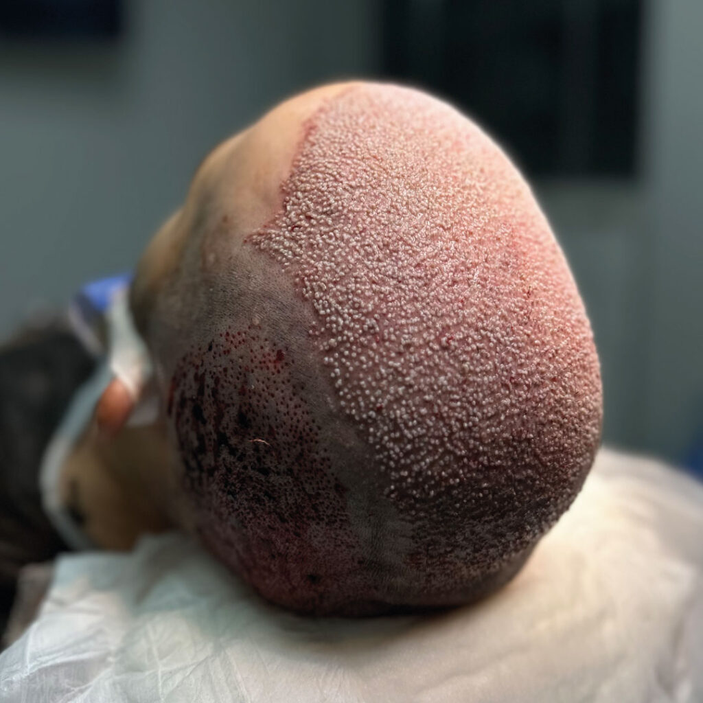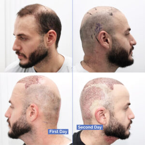 On the first day, the doctor will use more than half of the donor site to extract around 3000-3500 grafts. The next day the doctor performs the implantation by harvesting 3000 grafts from the nape of the neck and beard area, completing the session. (You can check beard hair transplant near me)